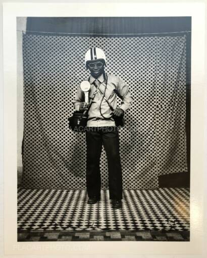 Be they still or moving maliciously, his subjects illustrate in many ways the remoteness and melancholy of African cities landlocked deep in the hearf of the continent. They also convey some youthful exuberance in the wake of the first decades of African independences. His lens witfully reviewed the natural fusion operating between tradition and modernity. His black and white images truly magnified this golden era before 24x36 format and common color films added up to what William Eggleston called the « democratic forest », an endless dilution of the photographic view within public space.