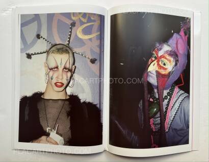 This photobook includes 3 parts, contained in a plastic printed slipcase: a glossy, stapled softcover catalogue with photos of the New York City nightclub scene taken between 1953 and 2013 by Alexis DIbiasio and a foreward by Ernie Glam, a member of the "club kids" depicted in the book. A smaller stapled softcover booklet with assembled images of the club kids' paraphenaliais also included, as well as a flexi-record produced for the book.
