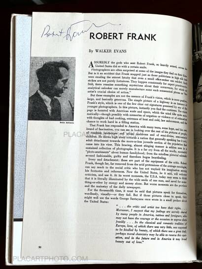 « Predating the publication of The Americans was a portfolio of Frank’s images published within the pages of the 1958 U. S. Camera Annual. With a preface by Robert Frank’s mentor and champion Walker Evans, and a statement by Frank himself, the 33 images constitute a declaration of purpose and serve as an overture to the masterwork yet to come.